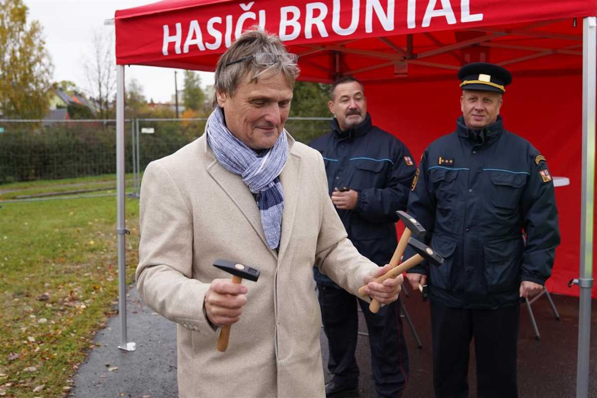 BRUNTÁL | Po měsících příprav začíná stavba nové hasičské zbrojnice v Bruntále. Slavnostní poklepání základního kamene s předáním staveniště zhotoviteli se uskutečnilo v místě stavby v Zeyerově ulici v pátek 24. října.