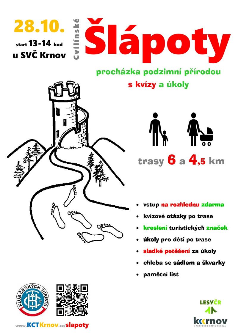 KRNOV | V úterý 28. října se okolí Krnova promění v hravou stezku plnou přírody, kvízů a překvapení. Tradiční akce Cvilínské šlápoty zve všechny milovníky turistiky na podzimní procházku se startem od 13:00 u SVČ Krnov. Na výběr jsou dvě trasy, po cestě čekají úkoly pro děti, sladké odměny, vstup na rozhlednu zdarma i voňavé občerstvení. Přijďte si užít barevný den v přírodě!