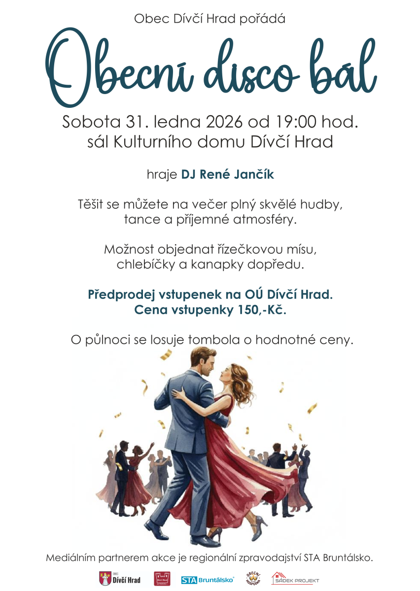 DÍVČÍ HRAD | Obec Dívčí Hrad srdečně zve všechny občany a přátele obce na Obecní Disco Bál, který se uskuteční 31. ledna 2026 od 19:00 v místním kulturním sále.