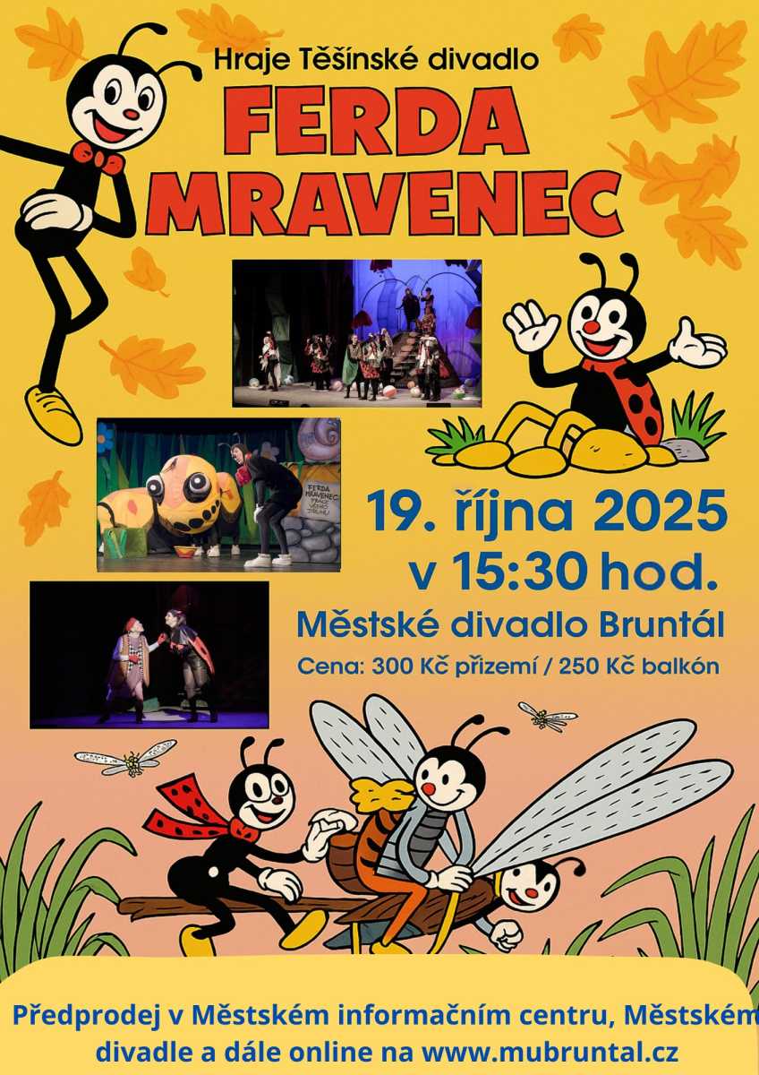 BRUNTÁL | V neděli 19. října od 15:30 hodin ožije Městské divadlo Bruntál oblíbenou pohádkou Ferda Mravenec. Veselý příběh plný dobrodružství, přátelství a laskavého humoru potěší malé i velké diváky. Přijďte si užít příjemné odpoledne s klasickou pohádkou, která nikdy nezestárne.
