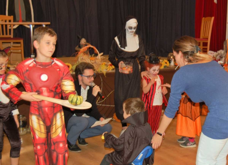 Lovení jablek, skákání na balonech,mumie, židličkovaná, šlapání po balóncích a další zajímavé soutěže halloweenského odpoledne, na kterém se pořádně děti vyřádily. Za každou soutěž výherce obdržel sladkou odměnu. Hlavní cenou pro všechny děti byl sladký balíček.
