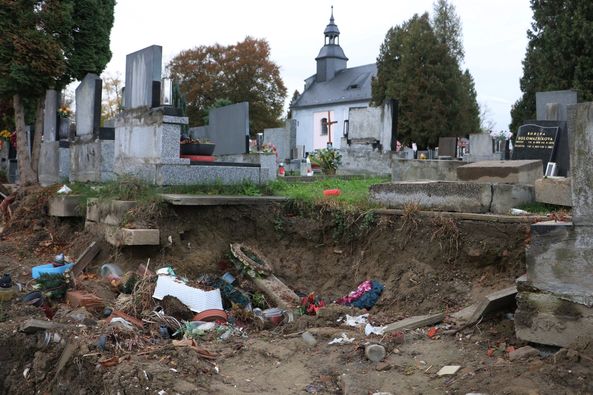 KRNOV | Povodeň z loňského září na hřbitově poničila nejen hroby a kostel Povýšení sv. Kříže, ale také hřbitovní zeď, které v ulici Hřbitovní chybí zhruba padesát metrů. Přesun hrobů již začal, s ohledem na nadcházející zimu se k obnově zdi přistoupí na jaře.