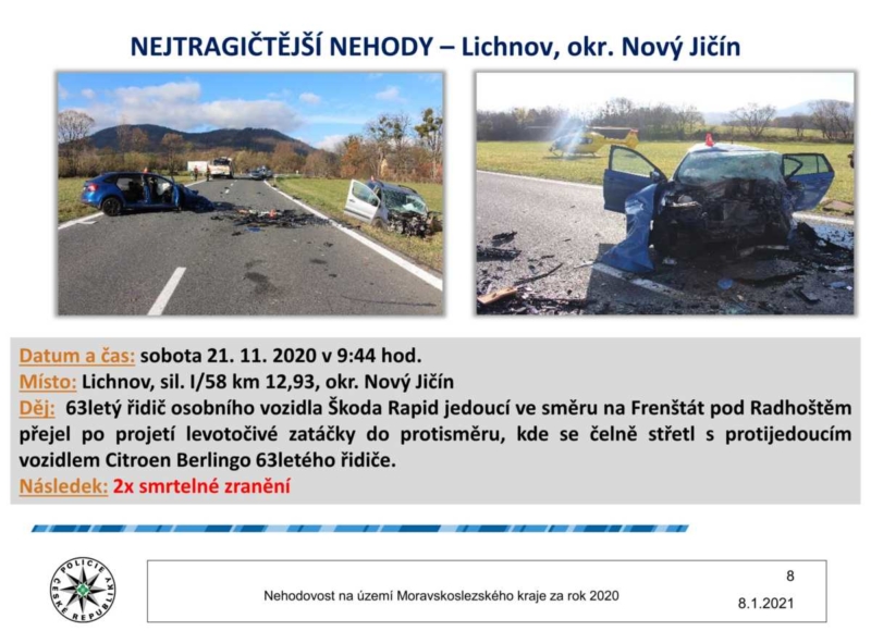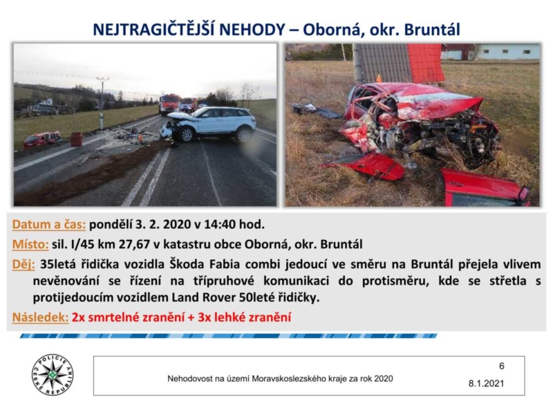 MSK, BRUNTÁLSKO (FOTO) | V Moravskoslezském kraji se za rok 2020 stalo celkem 9 tisíc 197 dopravních nehod, na Bruntálsku 907. Nejtragičtější událost se stala v Oborné u Bruntálu. Přečtěte si článek a podívejte se na prezentaci moravskoslezské policie!