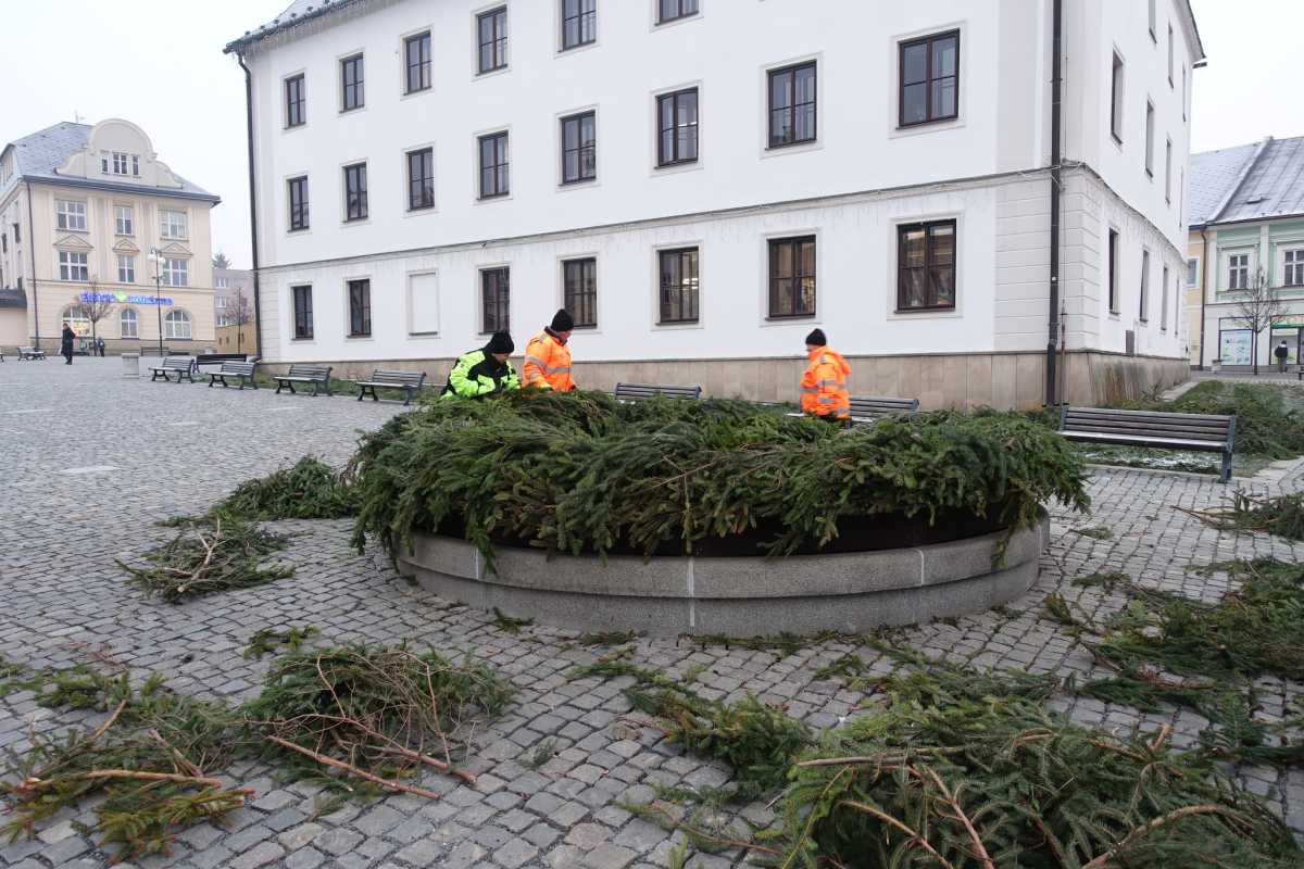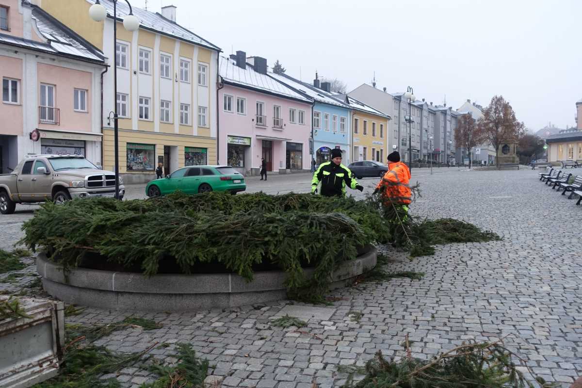 Na kašně v Rýmařově vzniká adventní věnec
