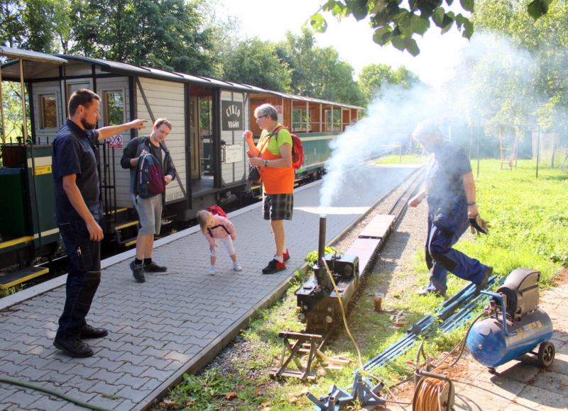 Na Osoblažské úzkokolejce v tuto chvíli parní lokomotivy nejezdí. Zasáhla je technická nepřízeň, opravují se. Obec Třemešná ve Slezsku o prvním srpnovém víkendu ale nakonec voněla párou. Návštěvníci, příznivci vlaků a rodiny s dětmi měli možnost se svézt vlakem poháněným se skutečnou parní lokomotivou spolku Sičova drobná železnice, přesněji s funkčním modelem parní lokomotivy 310.017 zvané Maruška v měřítku 1:8.