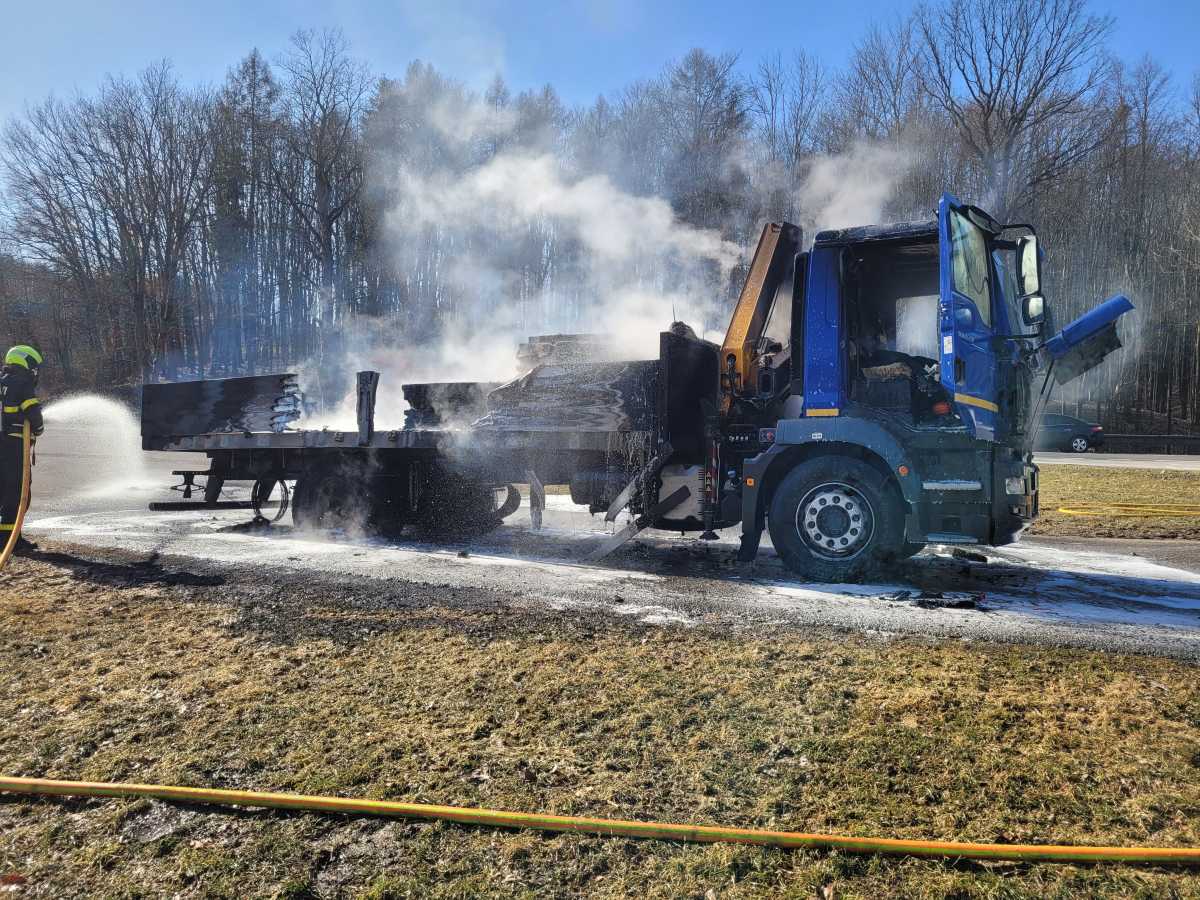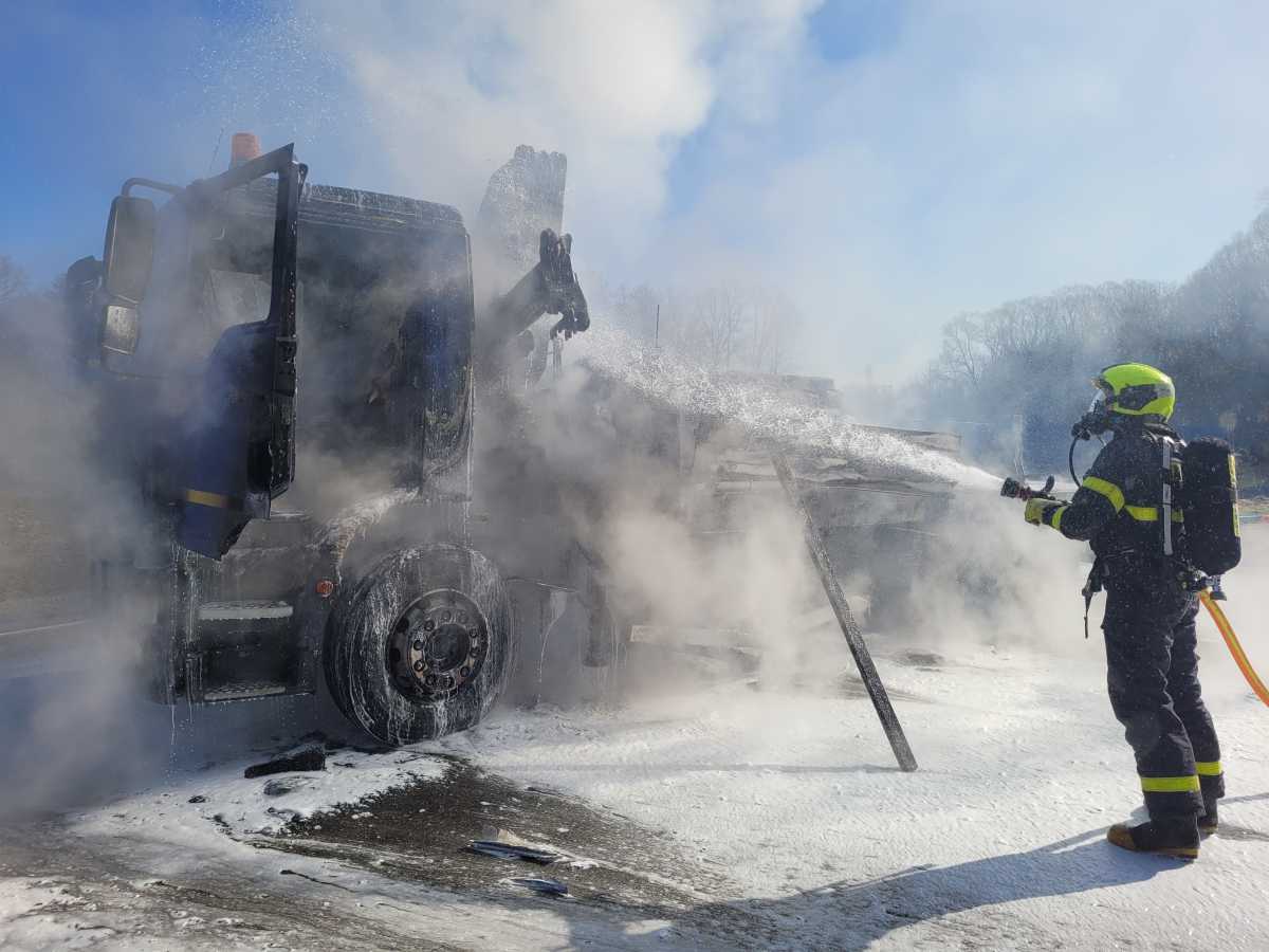 Nákladní vozidlo převážející stavební materiál zachvátil požár během jízdy. Řidič pohotovou reakcí odstavil vozidlo mimo komunikaci a snažil se zabránit rozšíření požáru částečným vyložením nákladu z jeho korby, a to až do příjezdu hasičů. Na boj s požárem byly nasazeny dva proudy. Požár byl lokalizován během pouhých osmi minut od příjezdu jednotek na místo, jeho následná likvidace zabrala dalších třicet minut.