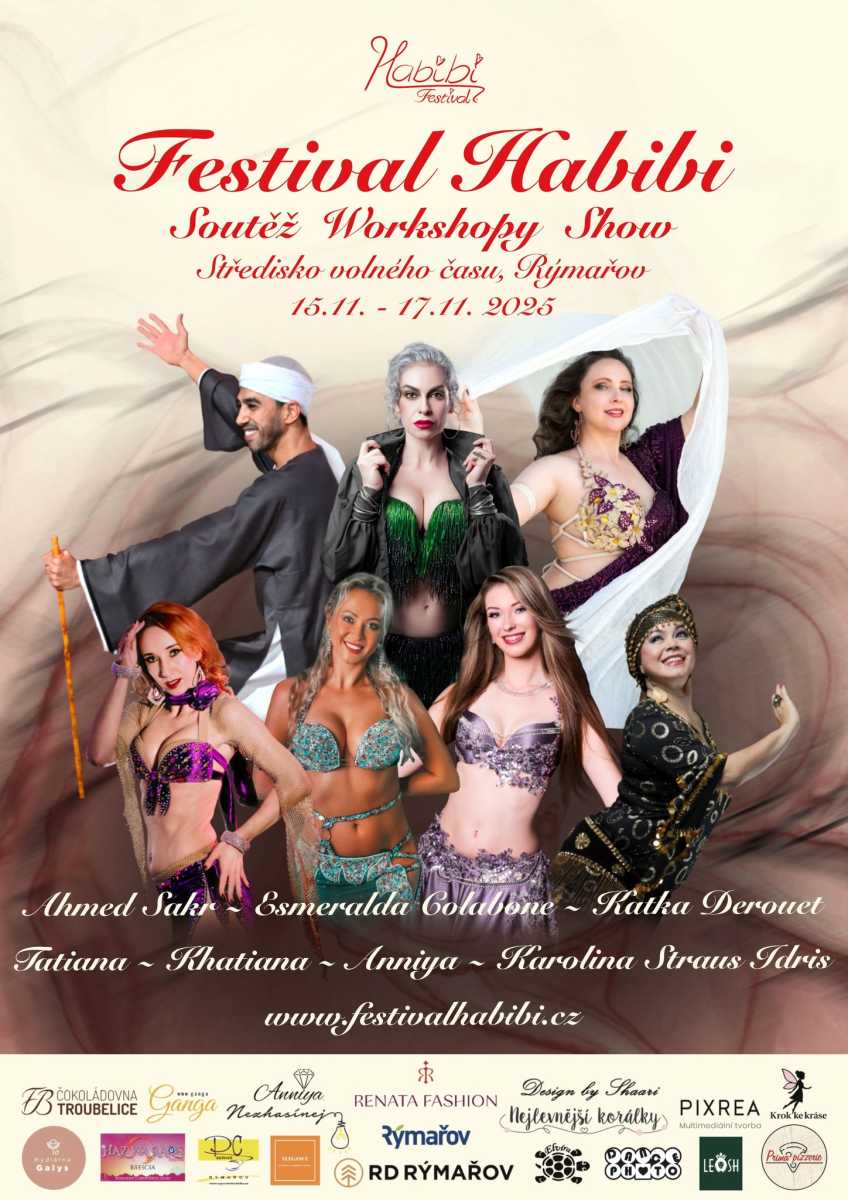 RÝMAŘOV | Rýmařov se o nadcházejícím prodlouženém víkendu roztančí v rytmu orientu. Festival Habibi nabídne bohatý program plný soutěží, workshopů i velkolepé multižánrové show s hosty z celého světa – od Brazílie až po Egypt. Na své si přijdou dospělí i dětské talenty, a to během tří dnů nabitých tancem, hudbou a exotickou atmosférou.