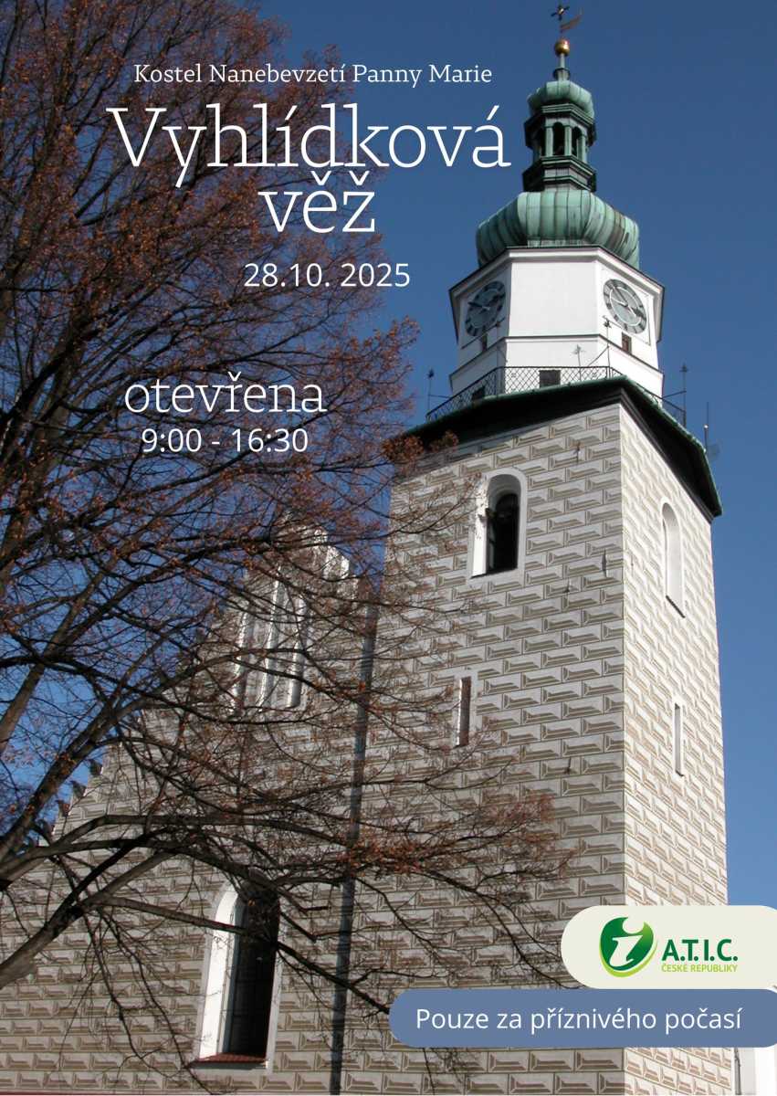 BRUNTÁL | U příležitosti vzniku samostatného československého státu bude 28. října od 9:00 do 16:30 zpřístupněna vyhlídková věž kostela Nanebevzetí Panny Marie. Využijte volný den k pohledu na Bruntál z výšky, výrobě vlastního odznáčku v infocentru nebo fotografii s českou vlajkou ve stylovém fotokoutku.