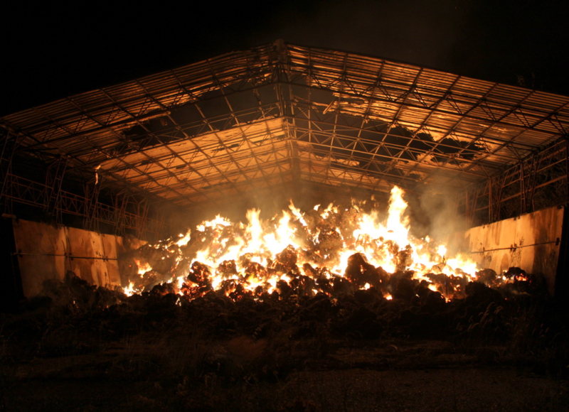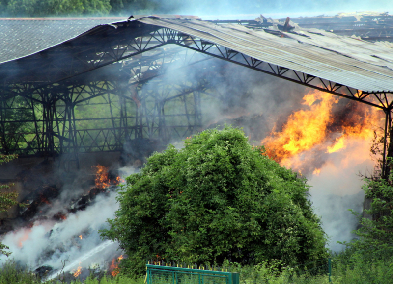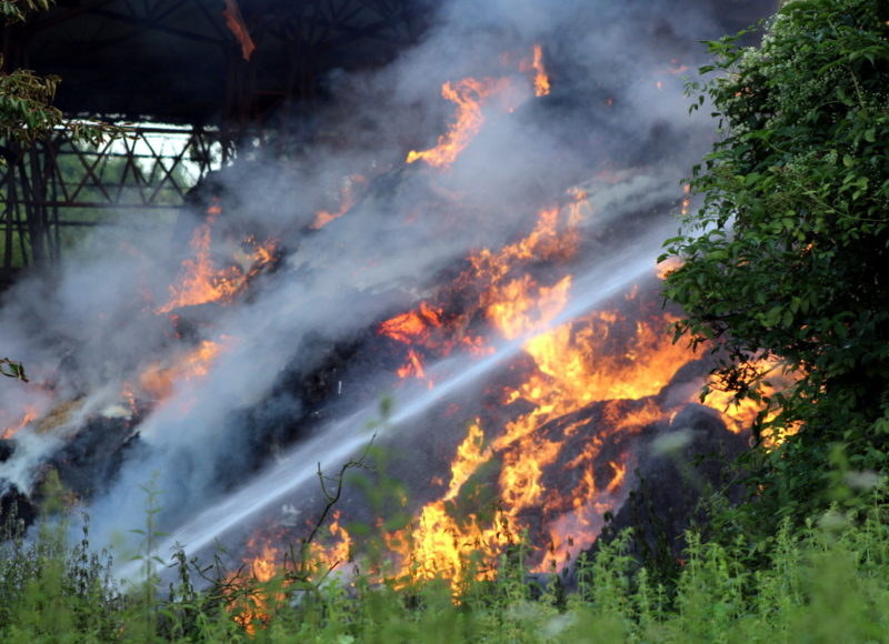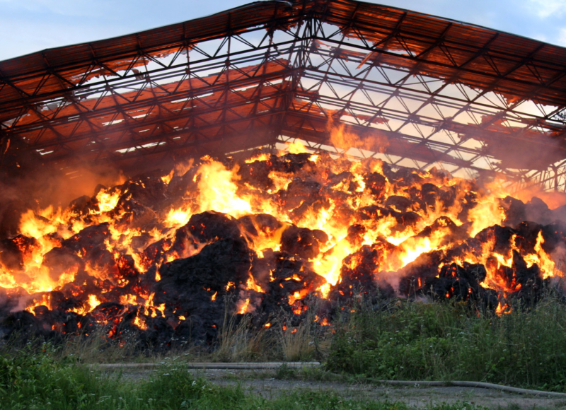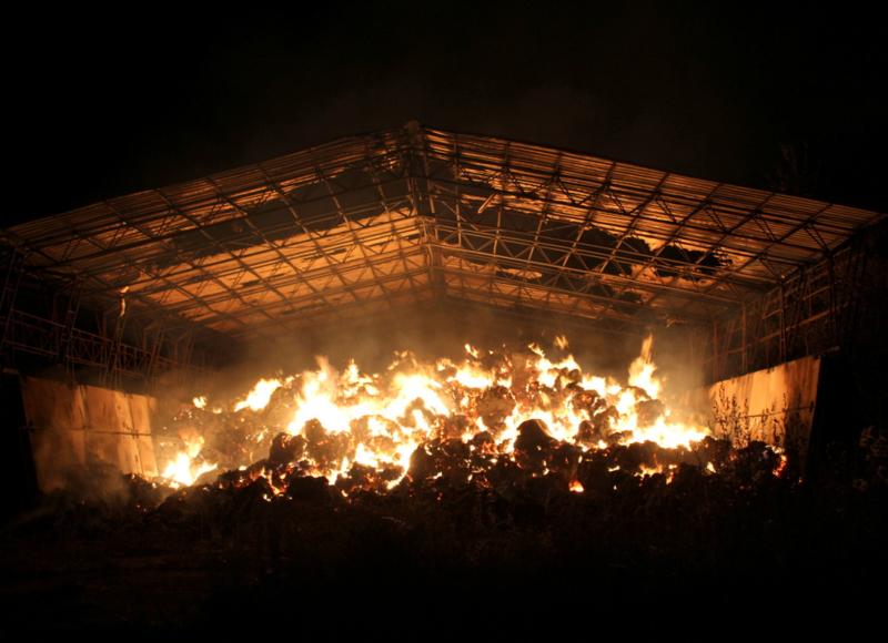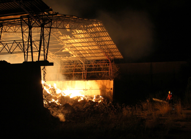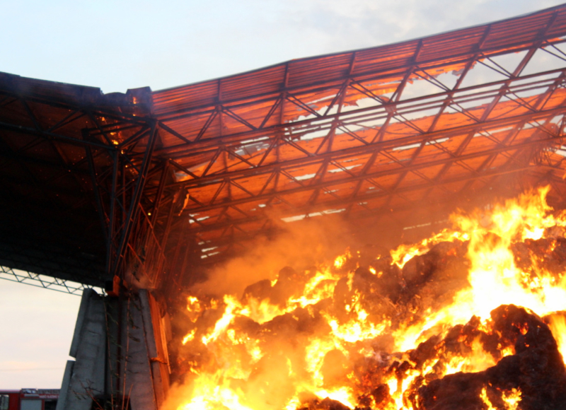 OSOBLAHA (AKTUALIZOVÁNO, FOTO, VIDEO) | Deset jednotek hasičů vyjelo do Osoblahy k rozsáhlému požáru haly s uskladněnou slámou. Objekt se nyní nechává dohořet. Podívejte se na foto a video z místa události!