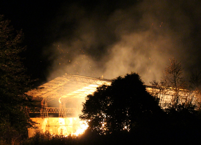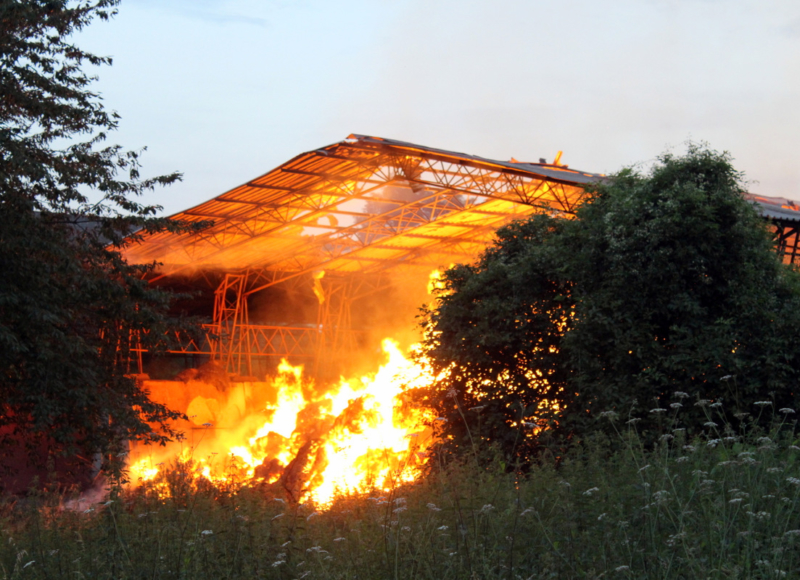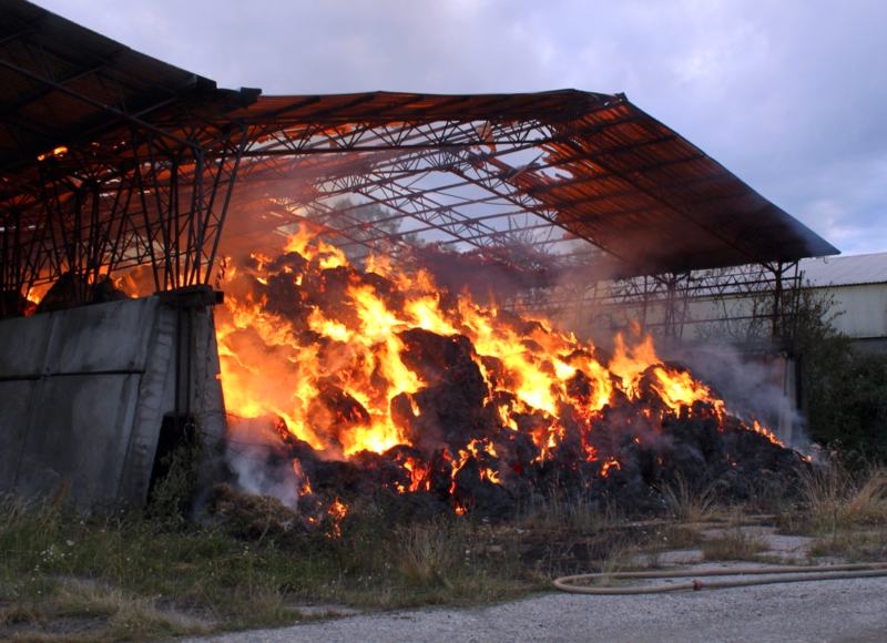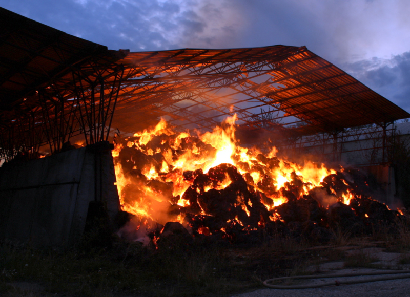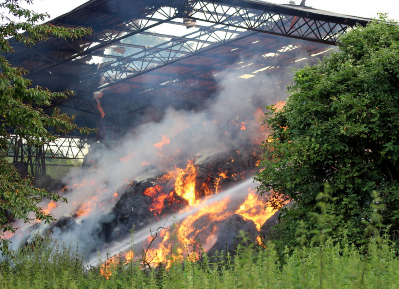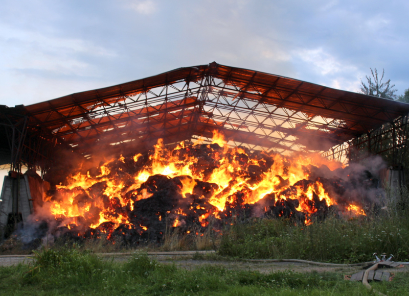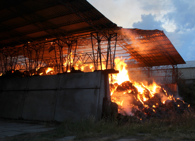 OSOBLAHA (AKTUALIZOVÁNO, FOTO, VIDEO) | Deset jednotek hasičů vyjelo do Osoblahy k rozsáhlému požáru haly s uskladněnou slámou. Objekt se nyní nechává dohořet. Podívejte se na foto a video z místa události!