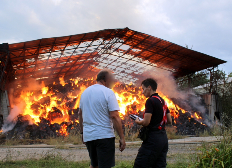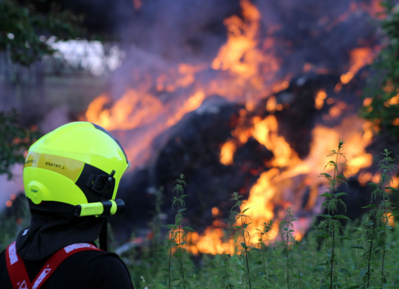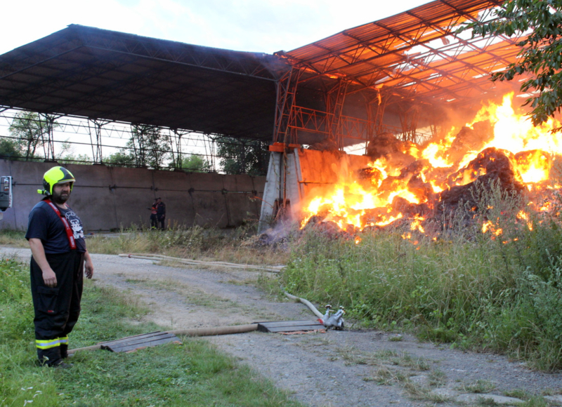 „Po dohodě s majitelem jsme se rozhodli, že se požár slámy nechá vyhořet, a to jednak z ekonomických důvodů, tak i z pohledu majitele. Dále se soustředíme na to, aby se požár nepřenesl na sousední okolí, na uskladněnou řepku a nedošlo k dalším škodám zde v obydlí,“ pokračoval šéf hasičů Patrovský.