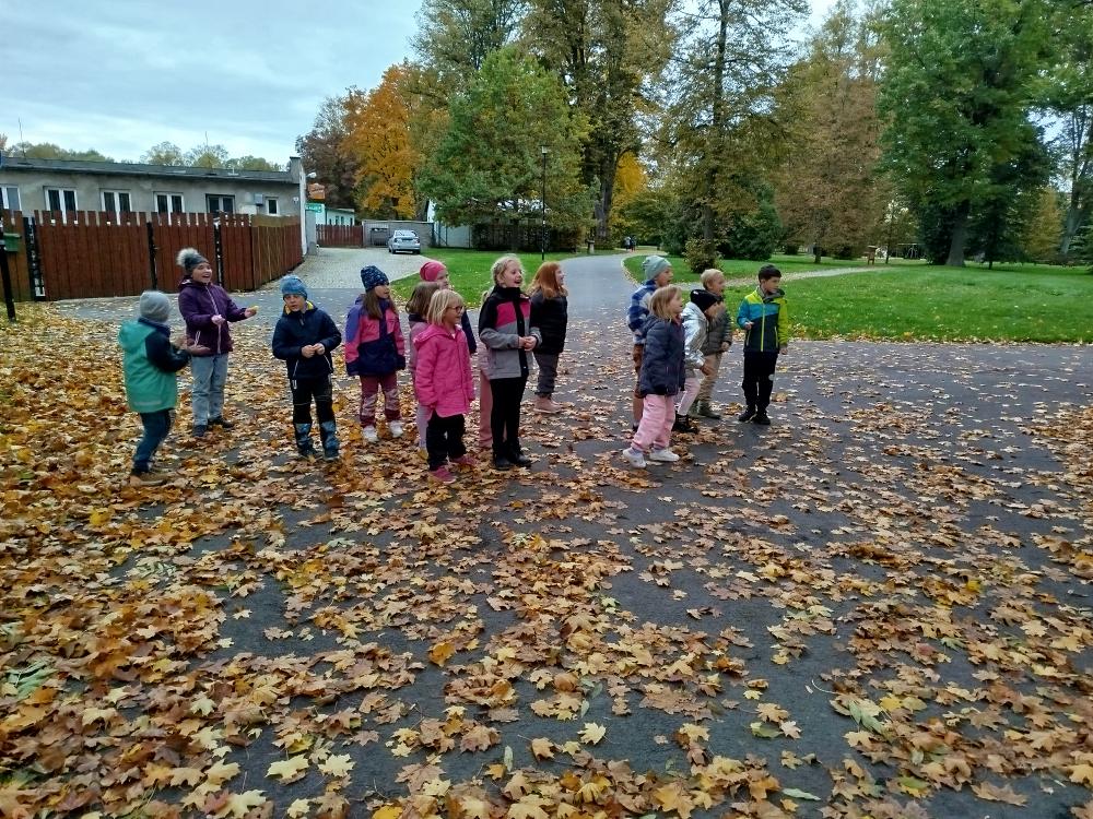 Se vším nasazením jsme ve dvojicích závodili na čas. Bylo to super. Zahřáli jsme se, zasmáli, a ještě jsme byli odměněni. Snad jsme se i trochu otužili. Po závodění jsme si chtěli jen tak odpočinout, a to nejlépe na průlezkách, houpačkách a na pyramidě. Někteří si zahráli i na archeology. Úplně všem se nám líbilo brouzdání v listech a samozřejmě vše, co s podzimním listí souvisí. Byl to moc pěkně strávený čas.