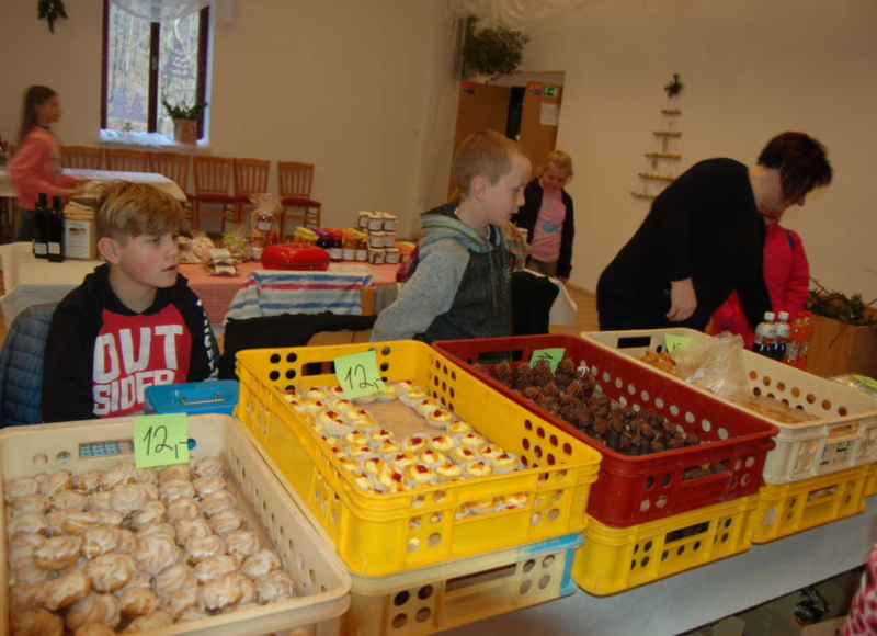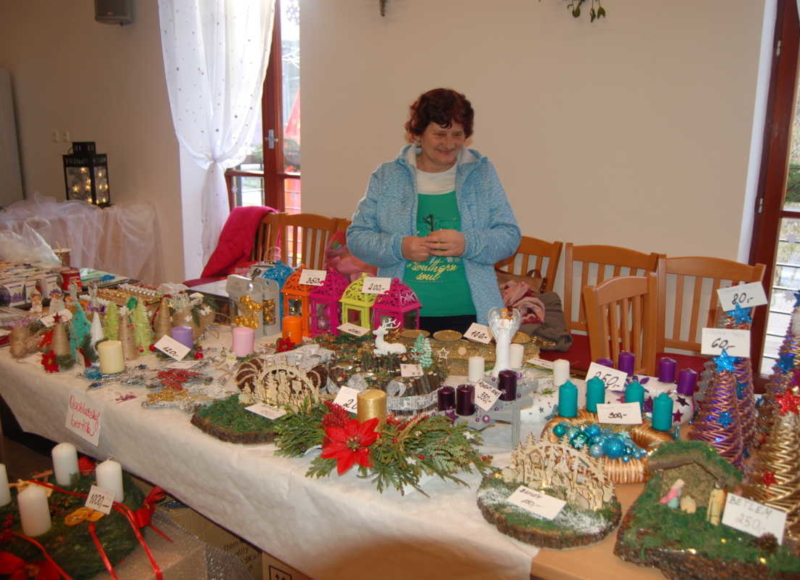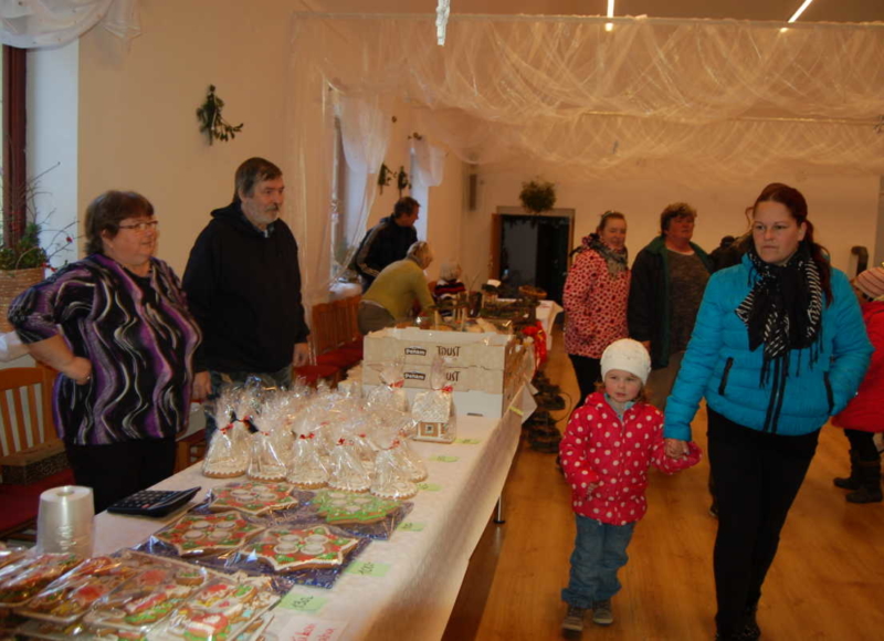 Od 13 hodin si návštěvníci mohli na sále kulturního domu zakoupit marmelády, džemy, vánoční výzdobu, dřevěné výrobky, ručně tkané koberce a další výrobky s Vánoční tématikou.