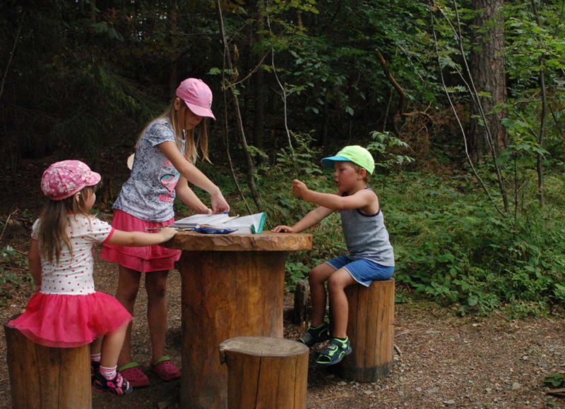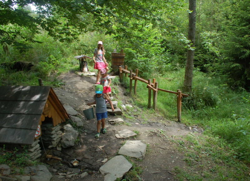 Trasa má celkem 11 zastavení měří asi dva kilometry a zvládnou ji i maminky s kočárky. Součástí naučné stezky jsou dřevěné sochy v podobě Žabího prince, trpaslíků, skřítků, nebo Hejkala. Na stezce jsou pro návštěvníky připravené různé úkoly. Například mají donést trpaslíkovi kameny a dalšímu pět šišek. U Křemenáče s Muchomůrkou si zastřílí šiškami, přenesou obří vejce na lžíci a další. Stezku uzavírá bludiště z klestí připomínající hnízdo a Krtečkova studánka kde si každý může nabrat na osvěžení vodu. Na samém konci zazvoní na zvonec.