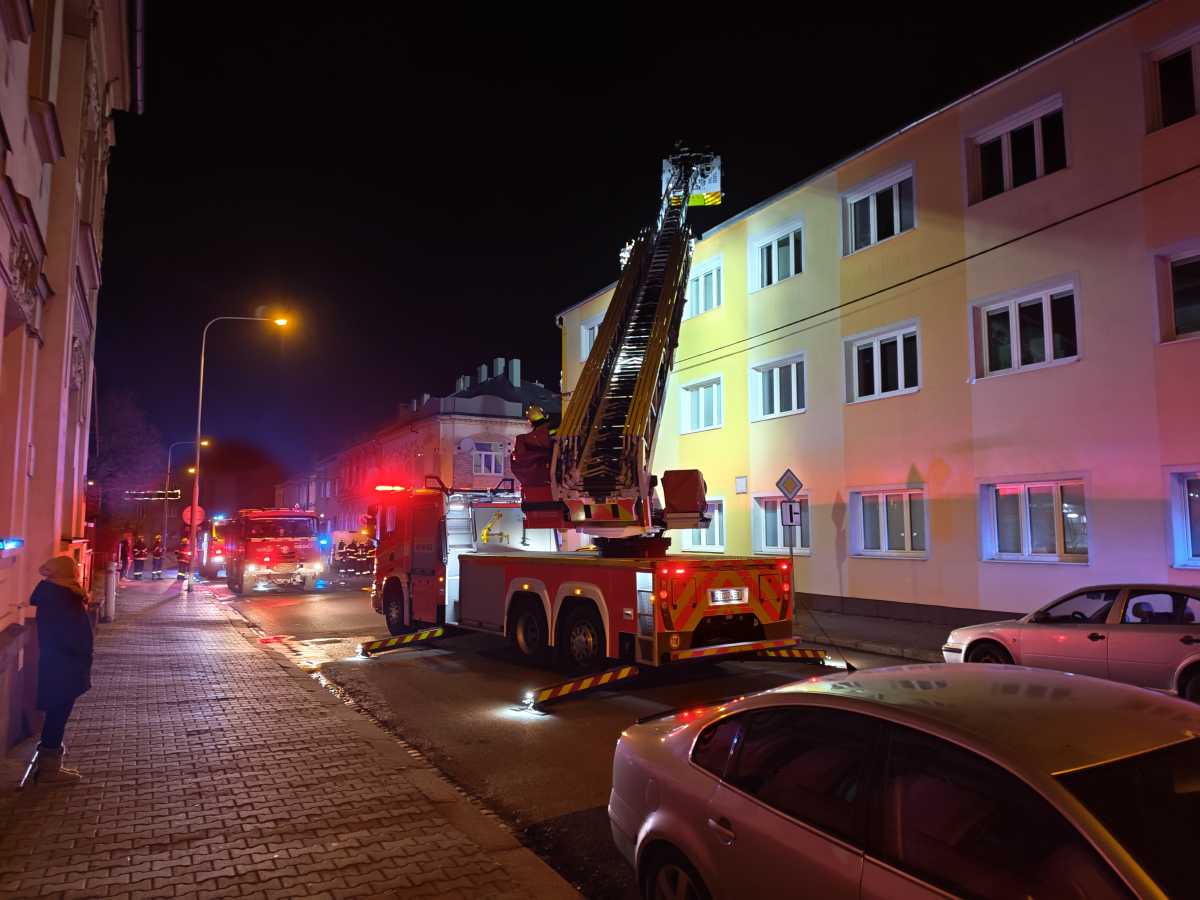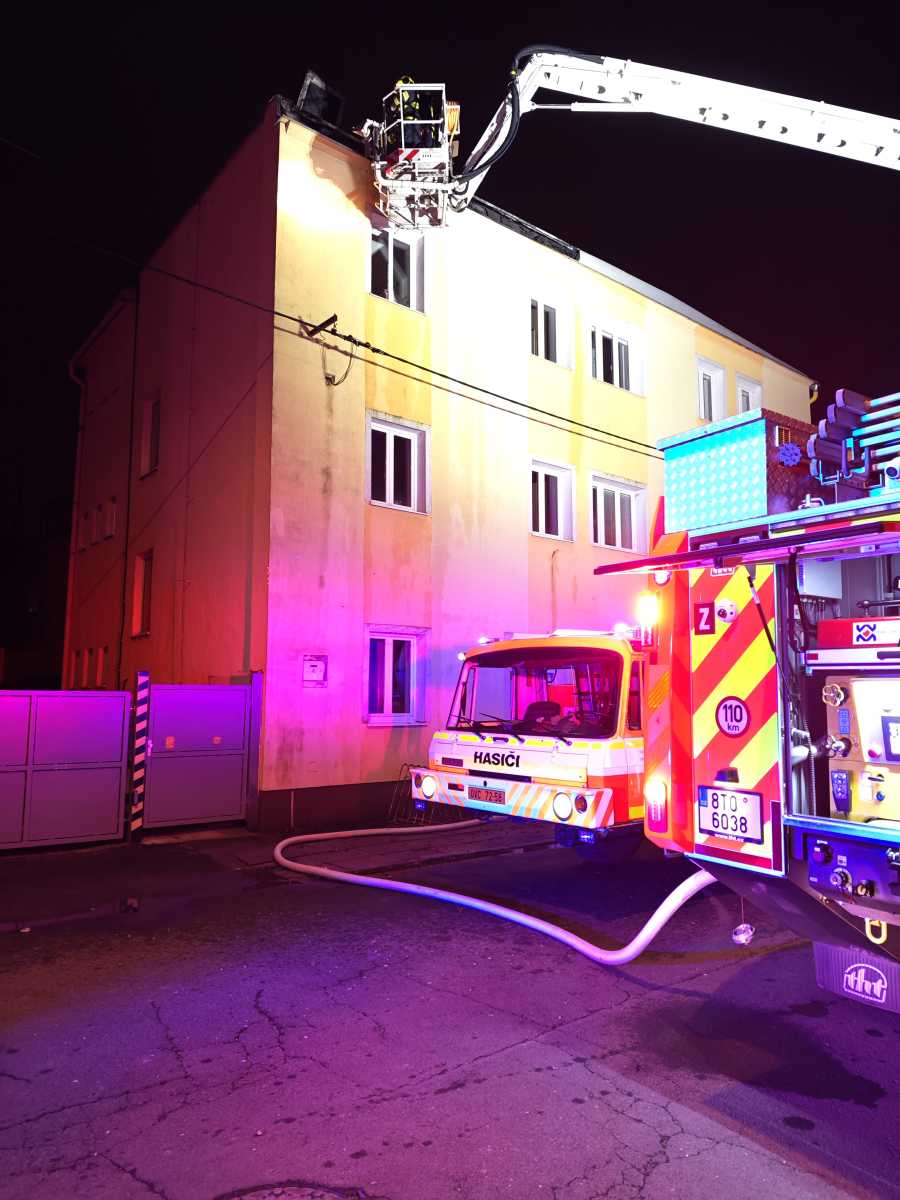 KRNOV | Pět jednotek hasičů zasahovalo u požáru střechy třípodlažního domu v Krnově, který způsobil odpal zábavní pyrotechniky.