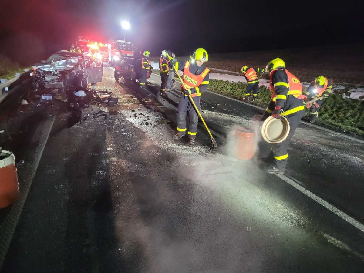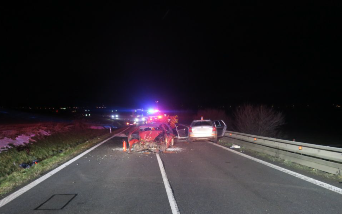 MĚSTO ALBRECHTICE | Úterní střet dvou osobních aut na silnici I/57 poblíž Města Albrechtic si vyžádal smrt mladého řidiče a vážná zranění dalších dvou osob. Provoz byl obnoven až před půlnocí.