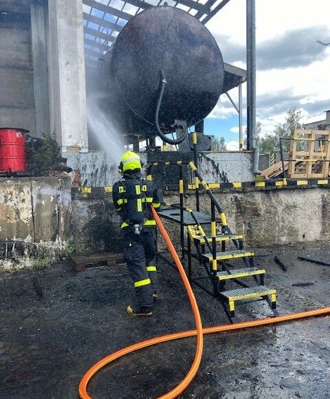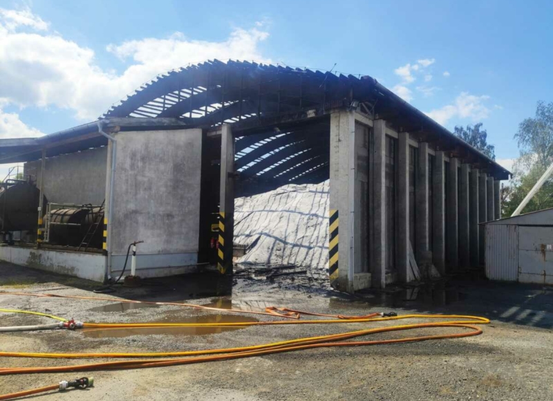 BRUNTÁL (FOTO) | Sedm jednotek hasičů zasahovalo v úterý 9. srpna 2022 v Bruntále u požáru dřevěné střechy budovy s posypovou solí – s předběžně odhadovanou škodou 5 milionů korun, z toho 2 miliony na soli. Oheň poškodil i plášť objektu o půdorysu 25 krát 12 metrů. Vznikl při rozehřívání asfaltové emulze. Nikdo nebyl zraněn.