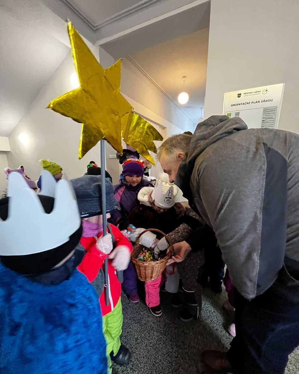 VRBNO POD PRADĚDEM | V rámci letošní Tříkrálové sbírky, do které se zapojila mateřská škola Ve Svahu, navštívily děti mimo jiné také městský úřad. Na radnici je přivítali starosta a místostarostka města.