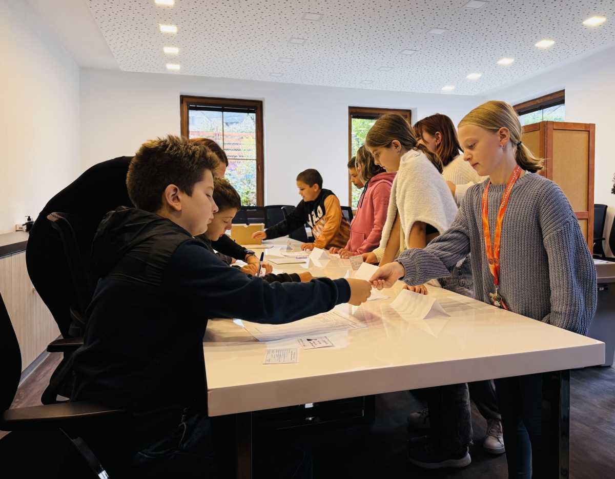 Pod vedením zaměstnankyně městského úřadu, paní Martiny Korviny Sakalové, se žáci dozvěděli, jak probíhá hlasování, k čemu slouží voličské průkazy a jak funguje volební komise. Do rolí zapisovatele a členů komise se zapojili čtyři dobrovolníci z řad dětí.