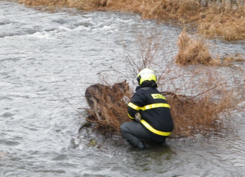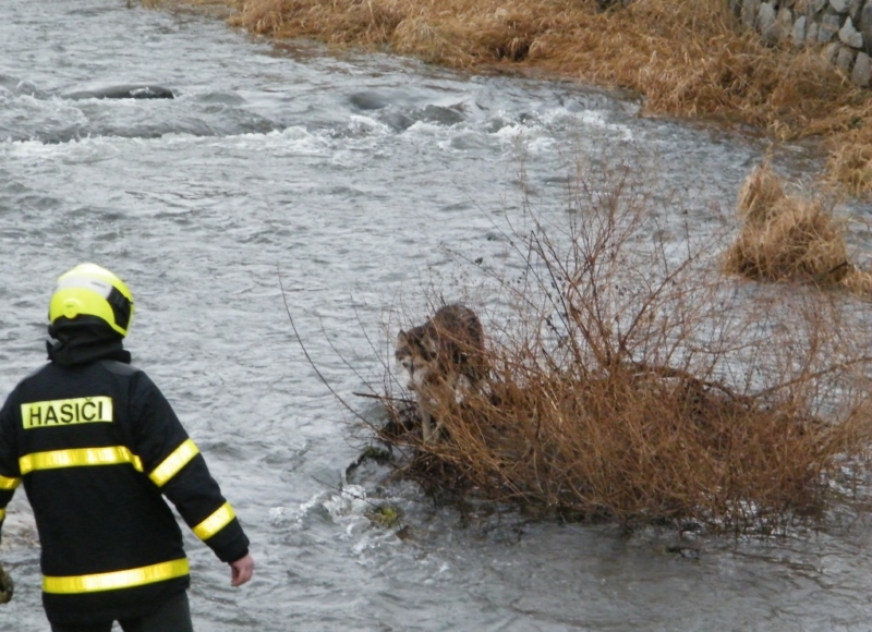 „Maggie pobíhala při jejich příjezdu bezradně po malém, suchou travou zarostlém ostrůvku uprostřed ledové vody. Jeden z hasičů v nepromokavých kalhotách vzal krotké zvíře do náručí a nahoru na kamennou zdí zpevněné nábřeží ji s kolegou vynesli po nastavovacím žebříku,“ informoval mluvčí moravskoslezských hasičů Petr Kůdela.