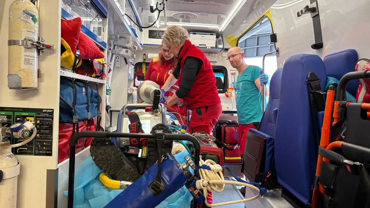 Posádka ZZS MSK pokračovala v záchraně pacienta rozšířenou resuscitací a potřebným zajištěním. Následně muže předala ECMO týmu, který provedl napojení na mimotělní krevní oběh, společně jej transportovali a předali do péče kardiologického centra fakultní nemocnice.