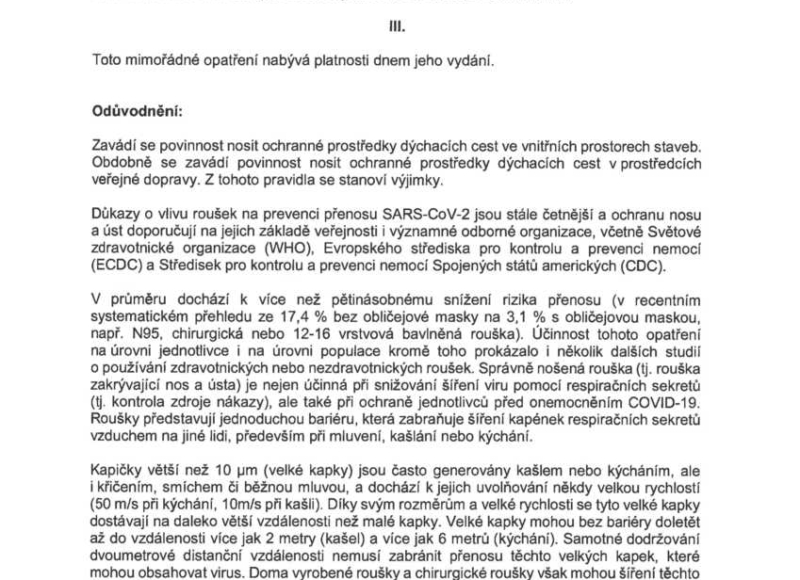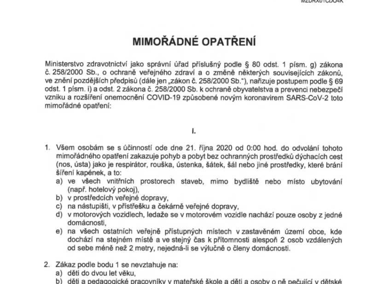 V České republice od 21. října 2020 do odvolání platí mimořádné opatření – nošení ochranných prostředků dýchacích cest.